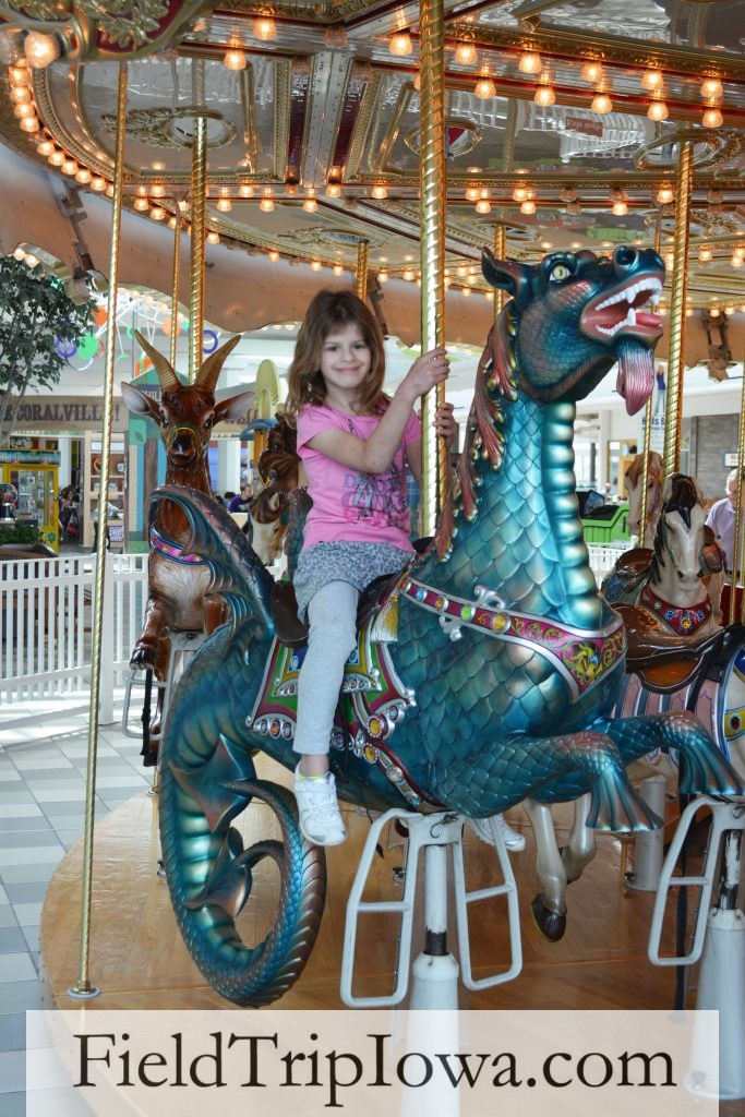 At Coral Ridge Mall there is a food court right next to the museum with a Chick-fli-a and an Ice Skating Rink. While in line to order, my girl was given a free coupon for a ride on the carousel.
