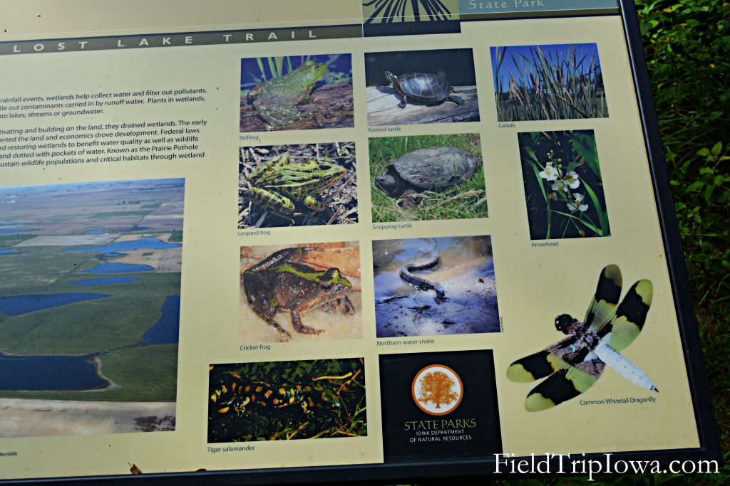 The Lost Lake area has a flat crushed rock trail that would be easy for strollers or little ones. Off of the flat path is some stairs and trails that lead to views of the Des Moines river. Note that there is NO bathroom at this trail head. Drive down the hill to the west to find a rustic bathroom on the right or north side of the road.