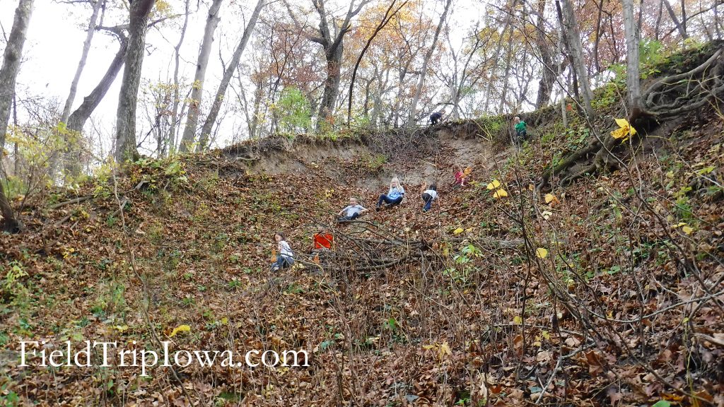 So many fun and special areas to explore as you go off trail. You can find this dirt slope on the northwest side of the wooded trail steps near the stream with the metal bridge.